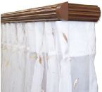 Horizons Decorative Traverse Rods are drapery traverse rods with a decorative 2" wood fascia attached (patent pending). They are custom cut to the exact size ordered and include a single or double traverse rod, genuine wood fascia, finials, end caps, brackets and screws. They are available in all the styles and colors of the 2" Fortunato and Nouveau Collections.