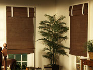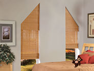 Angle Top Shades are functioning Roman shades that are able to be raised to the bottom of the triangular valance.