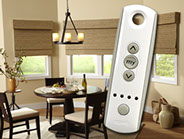 Horizons Natural Woven Roman Shades are available with either battery powered motors or A/C (plug-in) powered motors. The remotes are radio frequency.