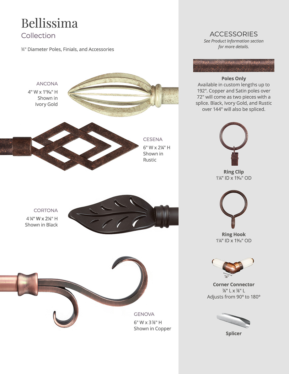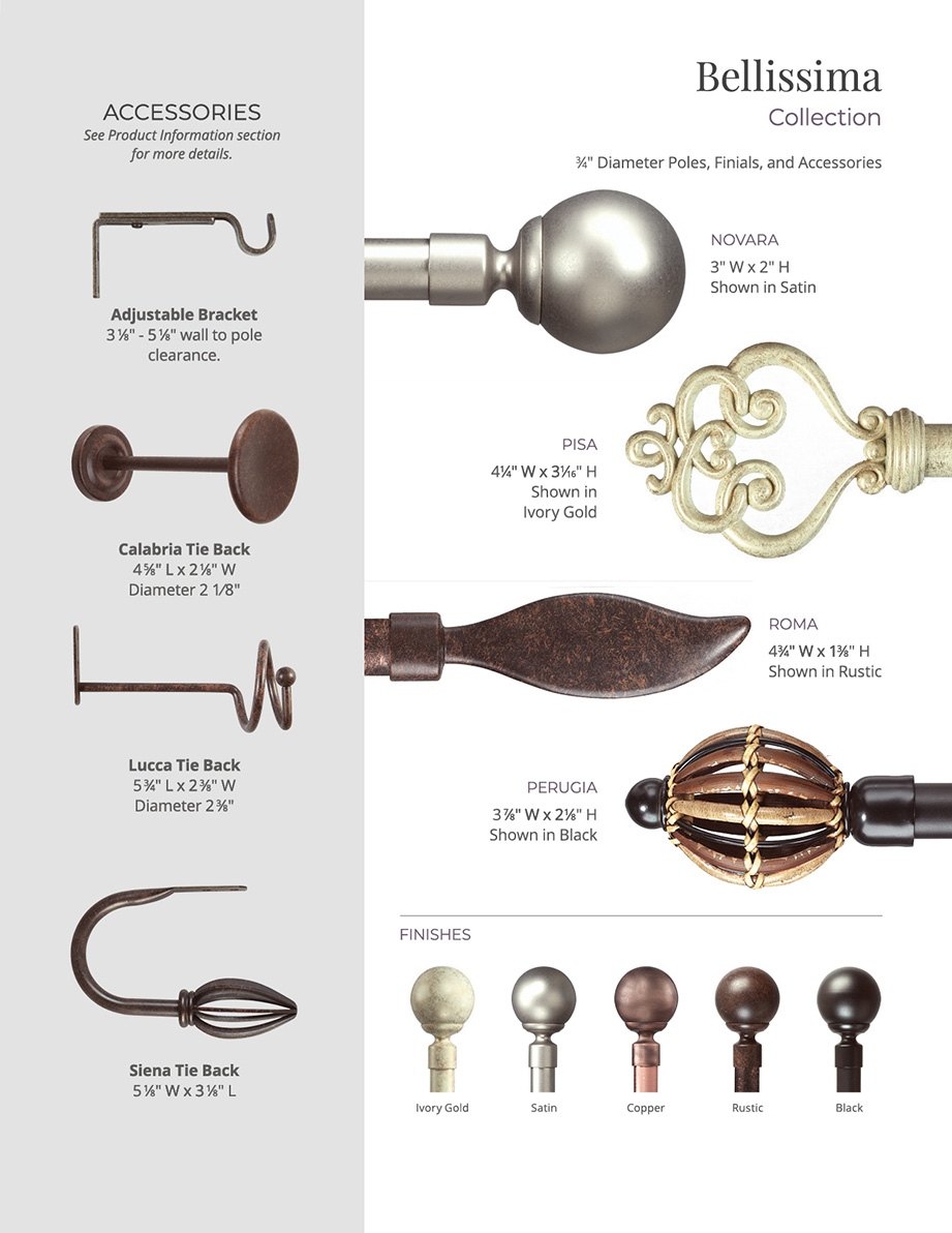 • • Pole, finials, and brackets in one convenient package