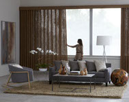 Combined in one unit, The Twin Shade is a fashionable Natural Woven Shade in the front with a practical Roller Shade in the back that acts as a movable lining.